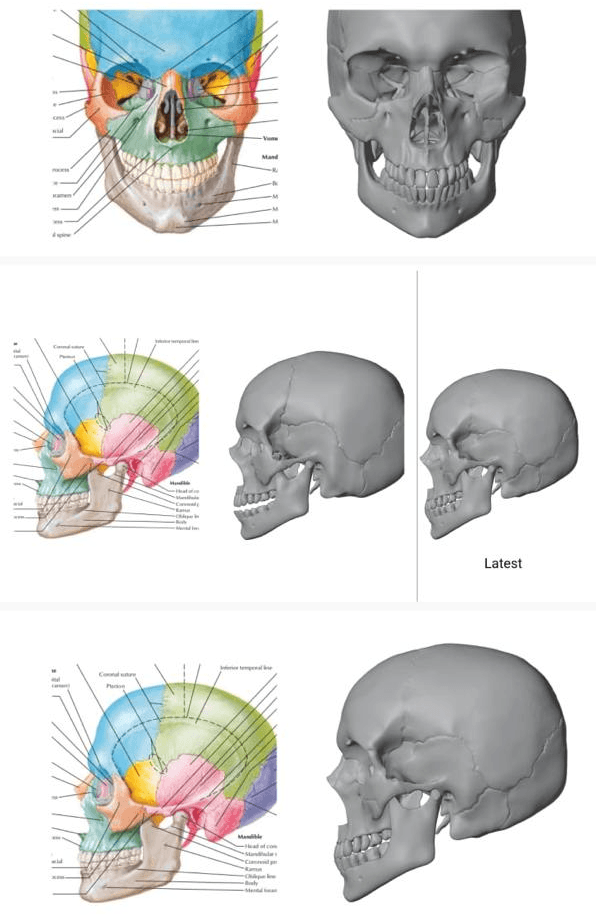 The process involved studying real bone samples in person, reviewing medical illustrations, and validating proportions with doctors who understand the nuances of anatomy far beyond what generic 3D models capture. Their input shaped everything—from overall silhouette to tiny landmark details—resulting in models that feel both scientifically accurate and artistically refined.